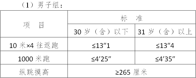 (三)面試體能測試三項全部達標的,視為合格