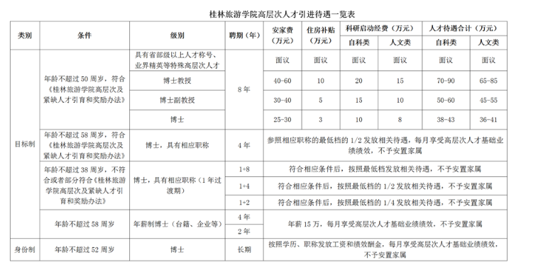 1.目標(biāo)制:全職引進,分為博士教授、博士副教授、博士三種類型,服務(wù)期為2至8年。