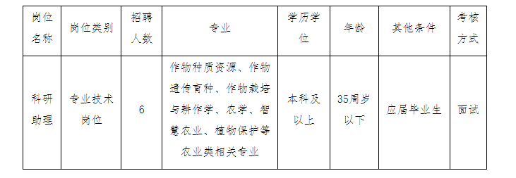 我所設(shè)有4個(gè)科室、1個(gè)種質(zhì)庫、1個(gè)中心和10個(gè)研究團(tuán)隊(duì)。根據(jù)工作需要,現(xiàn)面向社會(huì)公開招聘編制外工作人員6名。現(xiàn)將有關(guān)事項(xiàng)公告如下: