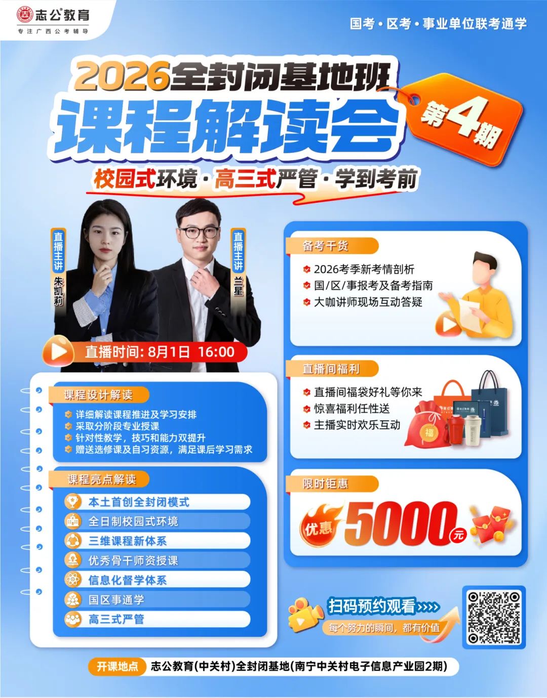 本次解讀會邀請到了朱凱莉、蘭星等資深講師。他們長期深耕公考領域,對廣西的公考形勢了如指掌。在解讀會上,講師們將為大家深度剖析2026考季的新考情、分享報考及備考指南,與同學們進行現(xiàn)場互動,更重要的是進行2026年全封閉基地班第4期課程設計解讀!讓你在備考之初就搶占先機。????