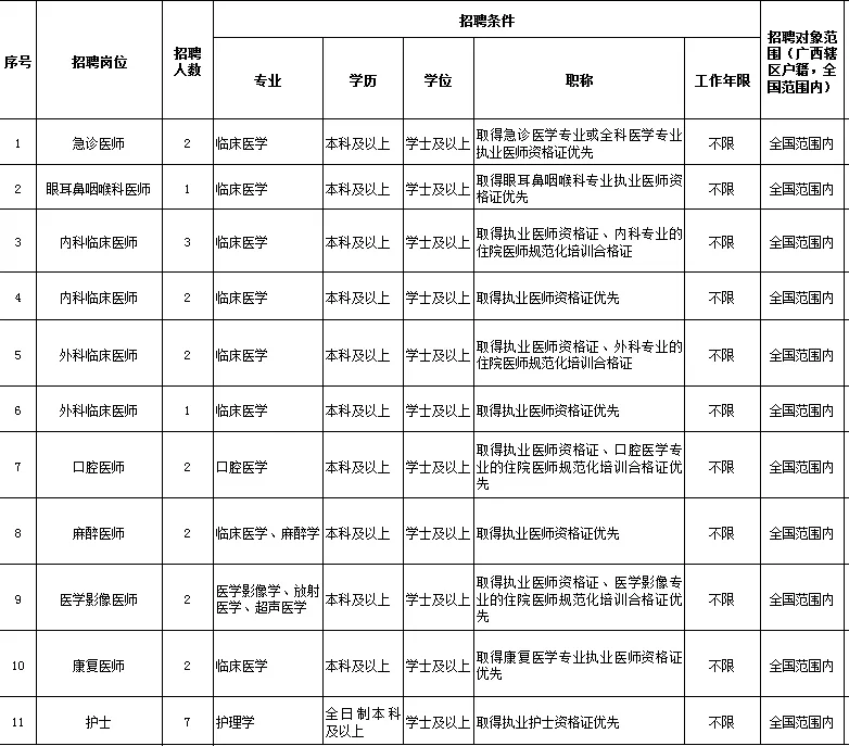 6.具備相應的學歷和學位,各專業(yè)技術崗位須取得相應的執(zhí)業(yè)準入資格或?qū)I(yè)技術資格,且執(zhí)業(yè)范圍符合專業(yè)技術需要;