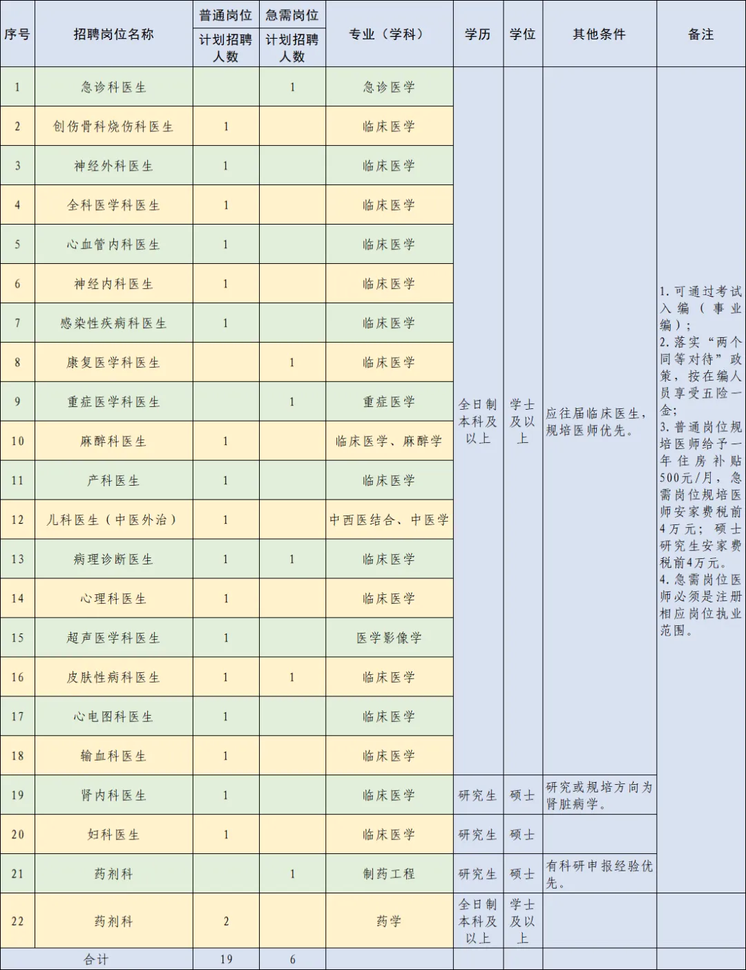 2.具有規(guī)培合格證的醫(yī)生依照國衛(wèi)辦科教發(fā)〔2021〕18號文件,落實“兩個同等對待”政策,即“面向社會招收的普通高校應(yīng)屆畢業(yè)生培訓(xùn)對象培訓(xùn)合格當(dāng)年在醫(yī)療衛(wèi)生機構(gòu)就業(yè)的,在招聘、派遣、落戶等方面,按當(dāng)年應(yīng)屆畢業(yè)生同等對待。對經(jīng)住培合格的本科學(xué)歷臨床醫(yī)師,在人員招聘、職稱晉升、崗位聘用、薪酬待遇等方面,與臨床醫(yī)學(xué)、中醫(yī)專業(yè)學(xué)位碩士研究生同等對待”。普通崗位規(guī)培醫(yī)師給予一年住房補貼500元/月,急需崗位規(guī)培醫(yī)師安家費稅前4萬元,急需崗位醫(yī)師必須注冊相應(yīng)崗位執(zhí)業(yè)范圍。